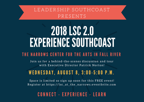 Get a behind-the-scenes look at what’s happening at the Narrows Center for the Arts in Fall River with executive director Patrick Norton on August 8. We’ll learn about the strategies and priorities guiding the Center’s work and the arts and culture scene in Fall River. We’ll end our visit with a brief tour of the facility. Space is limited so register soon for this FREE event!