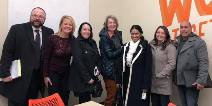 Team “The Roots” working with the Coalition for Social Justice on Massachusetts’ campaign for Affordable and Accessible High-Quality Early Education and Care: Kurt Hagstrom, Hagstrom Law Group; Aimee Bronhard, Fall River Public Schools; Deb Fastino, Coalition for Social Justice and organization project lead; Chris Cruz (’19), Nativity Prep and team mentor; Sapna Piracha, UMass Dartmouth; Rachel Davis, Southcoast Health; and Michael Medeiros, BayCoast Bank.