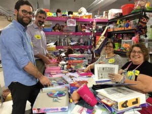 Lending a hand at Gifts to Give: LSC class members Michael McCarthy from UMass Dartmouth, Jim McKeag from Mass Development, and Sara Athanas from Groundwork help one of the Gifts to Give supervisors sort through some games